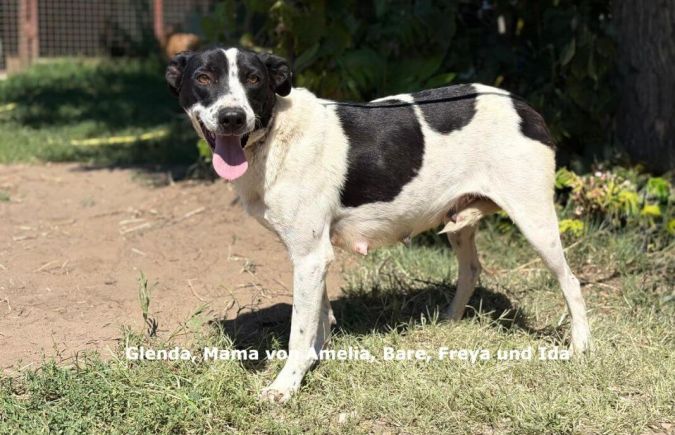 Die wunderschöne Glenda kam am 5.7.2025 hochträchtig als Fundhündin ins Menhely und am nächsten Tag gebar sie 6 Welpen. Amelia, Leif, Ida, Freya, Baré und Polo. Auch wenn das Tierheim nicht der ideale Ort für eine Hundefamilie ist, sind sie doch in Sicherheit. Hätte Glenda ihren Kinder irgendwo draussen auf die Welt gebracht, wären ihre Überlebenschancen sicherlich sehr klein gewesen. Ebenso haben die Kleinen Glück, mit ihrer Mamma an der Seite aufzuwachsen und Glenda ist eine liebevolle Hundemamma, welche sich rührend und gewissenhaft um ihren Nachwuchs kümmert. Die Kleinen gedeihen prächtig und halten schon mal Ausschau, nach ihren Menschen, damit sie, wenn sie reisefertig sind, zeitnah in ihr neues Zuhause reisen dürfen und nicht den kalten Winter hier im Zwinger verbringen müssen.