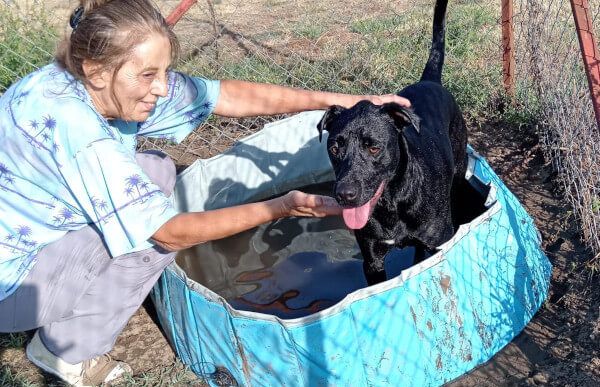 „Dinnye hat mit den Mentoren eine enge Freundschaft aufgebaut – er ist der Liebling aller. Auf dem Spielplatz ist er ein fröhlicher, lebensfroher, aktiver Hund. Er ist menschenbezogen, liebt Kinder und versteht sich auch gut mit seinen Hundefreunden, mit denen er sich einen Zwinger teilt. Er liebt es, im Wasser zu planschen und zu spielen. Dinnye ist aufmerksam und klug – er möchte lernen, spielerische Aufgaben bekommen und ausgedehnte Spaziergänge mit seiner neuen Familie unternehmen. Es ist eine Freude, Zeit mit ihm zu verbringen. Sein Glück, wenn er in Menschennähe sein darf, kennt keine Grenzen. Doch das Warten im Zwinger fällt ihm schwer – er ist noch jung und voller Tatendrang. Er lässt sich gut an der Leine führen.“