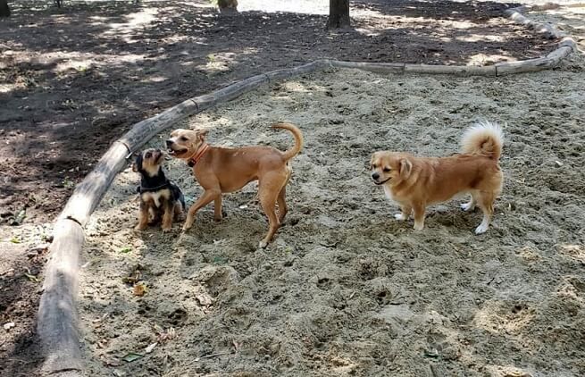 Mit anderen Hunden ist Gino meist freundlich. Bei ersten Begegnungen wirkt er manchmal angespannt und geht zielstrebig auf den anderen zu, danach verläuft das Beschnuppern aber ruhig, oft wird auch gespielt.
