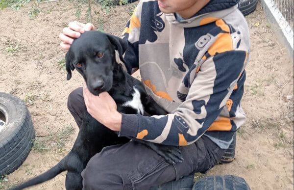 Er lebt gemeinsam mit mehreren Hunden in einem Zwinger, doch am meisten interessieren ihn die Menschen. An der Leine lässt er sich gut führen."
