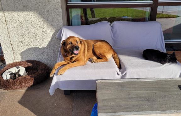 Trotz seiner traurigen Vergangenheit ist er sehr lieb, freundlich und uns Menschen zugetan, geniesst Streicheleinheiten, menschliche Zuneigung und Aufmerksamkeit, da hat er viel Nachholbedarf und musste dies vermutlich viel zu lange missen. Alt, männlich, gross, alles Adjektive, welche es nicht ganz einfach machen, für Rodos schnell ein liebevolles Zuhause zu finden. Da sind Menschen gefragt, welche ein ganz grosses Herz für alte Hunde haben und sehen, was für ein toller Hund Rodos ist, denn mit folgenden Adjektiven kann er wirklich punkten: aufmerksam, freundlich, hübsch, liebenswert, bescheiden, dankbar, treu und das Herz am richtigen Fleck. Er ist neugierig auf das Leben ausserhalb des Tierheims und noch munter unterwegs. Rodos hat keine grossen Ansprüche, aber er sollte seinen Lebensabend in Würde und geliebt verbringen dürfen, vielleicht überhaupt das erste Mal in seinem Leben spüren, dass er etwas wert ist und es Menschen gibt, welchen er etwas bedeutet und welche ihn umsorgen und beschützen. Auch Rodos muss noch ein paar Dinge vom Hunde-ABC liebevoll beigebracht bekommen, das an der Leine laufen klappt schon ganz prima. Mit seinen Artgenossen versteht sich Rodos gut, lebt aktuell (19.9.2025) allein in einem Kennel.