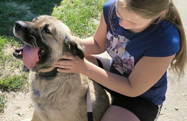 Eine freiwillige ungarische Helferin schreibt am 05.08.2024: "Wir hatten die Gelegenheit, Szava an einem Mentorentag zu treffen. Ihr Mentor hat ihr einen spannenden und interessanten Spaziergang ermöglicht. Sie wurden sofort Freunde. Sie war auch glücklich, von einem Kind gestreichelt zu werden.
