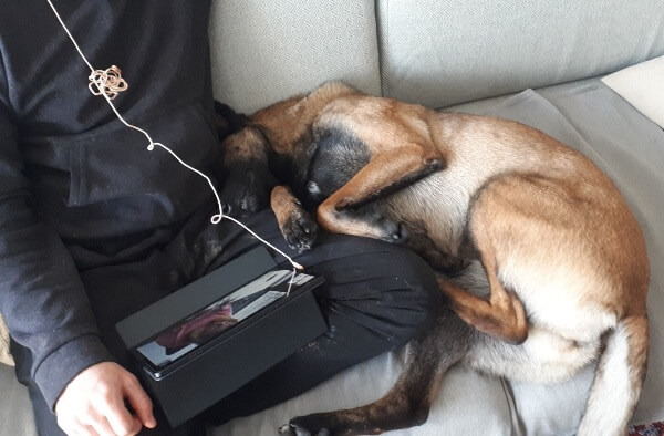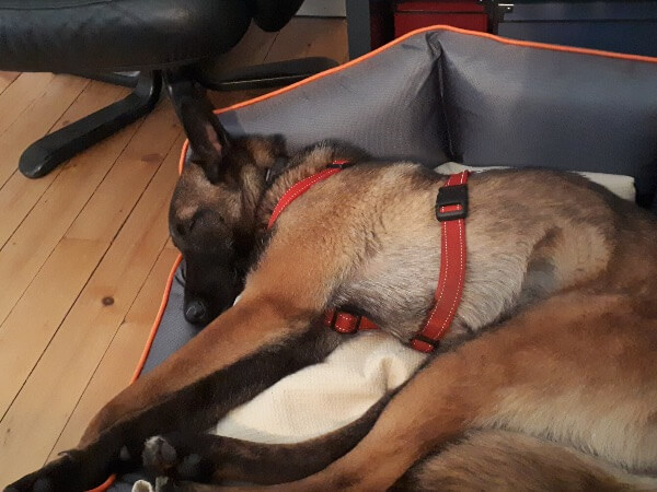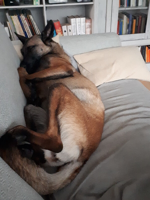 Als sie sich etwas bei uns eingelebt hatte (nach ca. 3 Wochen) besuchten wir bei der Hundeschule ProCane die Junghundegruppe mit ihr, wo Sies eheschnell viele Fortschritte gemacht hat. Dazwischen hatten wir einige Einzelstunden bei unseren Hundetrainerin genommen, um Unterstützung bei den oben genannten Schwierigkeiten zu holen. Raja und wir machten so schnell Fortschritte, dass wir nach 2 Monaten in die Alltags- und Begegnungsgruppe der Hundeschule wechseln konnten. Neben der Hundeschule begannen wir mit der Objektsuche (Suche von versteckten Feuerzeugen) und dann später mit Obedience und Mantrallincg. Rassentypisch ist Raja bei allen drei Hundesportarten sehr motiviert dabei und macht sehr schnell Fortschritte. Der Hundesport hat auch geholfen, Raja mehr Selbstvertrauen zu geben und Ihr Misstrauen gegenüber unbekannten Menschen abzubauen. Beim Obedience bereiten wir und jetzt auf Dienste Prüfung (Beginners) vor. Wenn wir nicht gerade Hundesport betreiben, gehen wir mit ihr längere Spaziergänge machen oder wandern. Wir haben auch Canicross ausprobiert, aber Freja hat hierbei bisher nicht so viel Motivation gezeigt. Wir mussten aber neben der Auslastung von Raja auch von Anfang an schauen, dass sie genug zur Ruhe kam, um sich genügend zu regenerieren und Stress abbauen zu können. Am besten kann sie entspannen, wenn sie neben uns auf dem Sofa liegt oder auf ihrem Bett, wenn wir im gleichen Zimmer sind und ruhig etwas erledigen. Sehr viel Stress bereitet ihr noch, wenn sie allein bleiben soll oder auch einer von uns beiden weggeht, wobei sie sehr gut allein im Auto bleiben kann. Das Alleinlassen ist sicher noch ein Punkt, den wir weiterhin trainieren müssen.