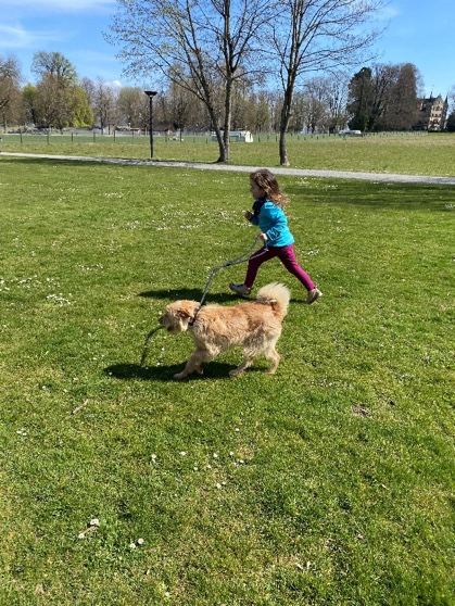 Er ist ein total aufgestellter, neugieriger, beschützender und manchmal doch etwas unsicherer Vierbeiner. Er hat uns alle sofort ins Herz geschlossen wie auch wir ihn.
