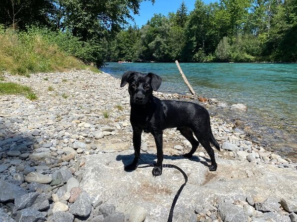 Clooney ist nun schon 7 Monate bei mir. Er ist ein schlaues Kerlchen und er lernt gerne und schnell. Manchmal hat er aber einen sturen Kopf, besonders wenn es etwas machen soll, dass er gerade blöd findet. Aber wir haben nun Unterstützung von einer Hundetrainerin, die uns hilft, an Clooneys Unsicherheiten zu arbeiten. Leider haben wir immer noch Probleme in der Stadt, da Clooney stark auf laute Geräusche reagiert. Im Wald, am Wasser oder auf dem Feld blüht Clooney aber so richtig auf und dort kann er ein sorgenfreier Junghund sein. Mit anderen Hunden versteht sich Clooney im Normalfall ausgezeichnet und er freut sich immer darüber, seine Artgenossen zu sehen.