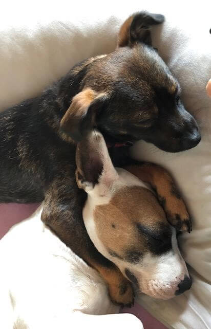 Pablo ist, typisch Junghund, sehr aufgeschlossen seinem neuen Rudel gegenübergetreten. Nach ein paar Stunden sind dann jedoch die Pferde mit dem kleinen Mann durchgegangen und er "griff" gleich mehrere meiner anderen Hunde an. Somit hiess es für die nächste Zeit Leinenpflicht für Pablo. Nach ein paar wenigen Tagen hat sich Pablo aber super in mein bestehendes Rudel integriert und seinen Platz gefunden. Einzig mit meinem ältesten Rüden Sandokan (übrigens auch von Animal Happyend) versteht er sich nicht immer so gut. Die beiden haben wohl das Heu nicht so ganz auf derselben Bühne, aber die meiste Zeit arrangieren sie sich ganz gut und können sogar nebeneinander auf dem Sofa liegen.