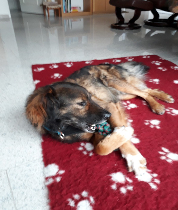 Auch gesundheitlich geht es mir gut. Durch Physiotherapie, Massagen, Colagile, gezieltem Muskelaufbautraining und ab und zu Schmerztabletten hinke ich nicht mehr. Die Tierärztin, welche ich regelmässig besuche, sagt mit der Operation sollen wir noch zuwarten, zumal ich an beiden Hinterbeinen operiert werden müsste.