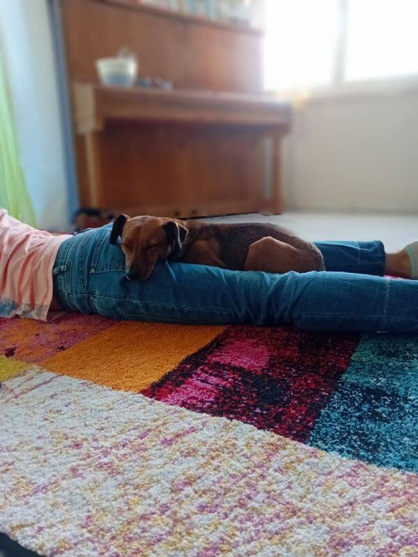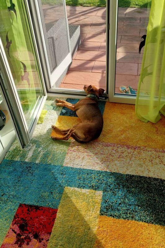 Sparrow ist ein lebendiger und intelligenter Hund. Er bringt uns oft zum lachen. Wir sind sehr froh, dass er bei uns ist. Sparrow hat auch immer wieder mal lustige Liege-Orte. Wie zB auf kleinen Taschen, Rucksäcken oder gestern Abend lag meine Tochter am Boden mit Ihrer Decke und Sparrow gesellte sich zu ihr. Oder wenn er auf der Schwelle zur Tür liegt - das sieht sehr unbequem aus. Er ist auf jeden Fall nicht mehr aus unserem Leben wegzudenken und die intensive Zeit am Anfang hat sich sehr gelohnt. Da wir eine aktive Familie sind, wird es ihm bestimmt auch nicht langweilig.