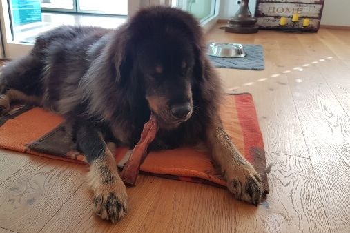 Unser kleiner Bär – ein wahrlich grosses Geschenk! Vor 10 Monaten durften wir den gut 9-jährigen Maci, einen imposanten und wunderschönen Tibet Mastiff in der Schweiz empfangen. Aufgeregt waren wir, denn Maci ist nicht nur ziemlich gross, sondern hat auch schon einige Gebrechen.