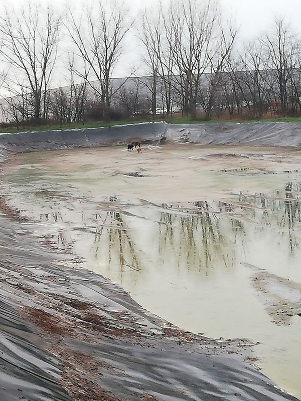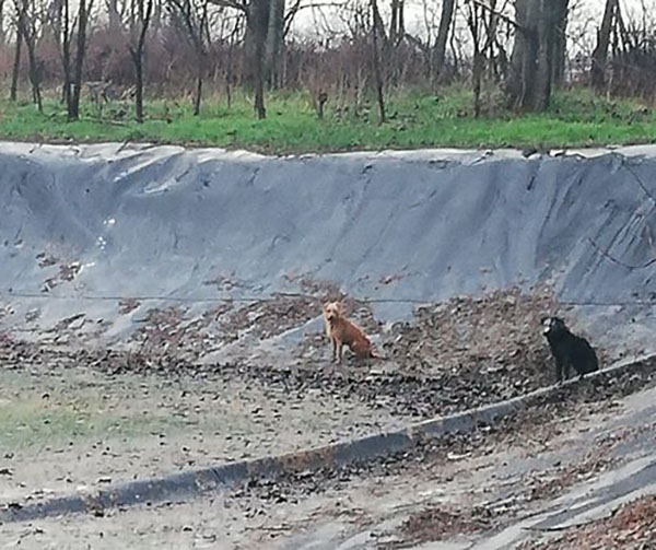 3 Hunde in einer Grube rsp Teich ohne Wasser gefunden