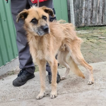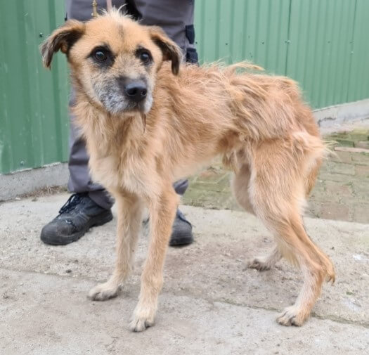 Dieser völlig abgemargerte Vierbeiner kam heute ins Tierheim. Jetzt kann er sich erstmal auf der Krankenstation im Tierheim erholen und zu Kräften kommen.
