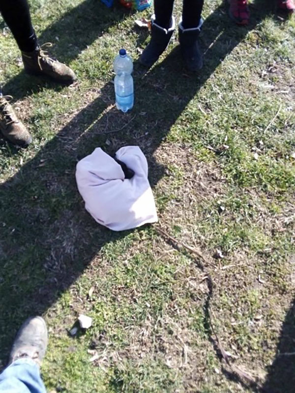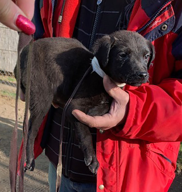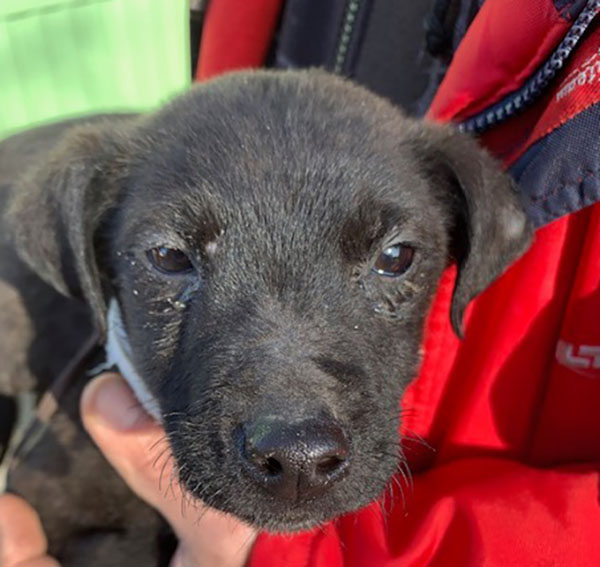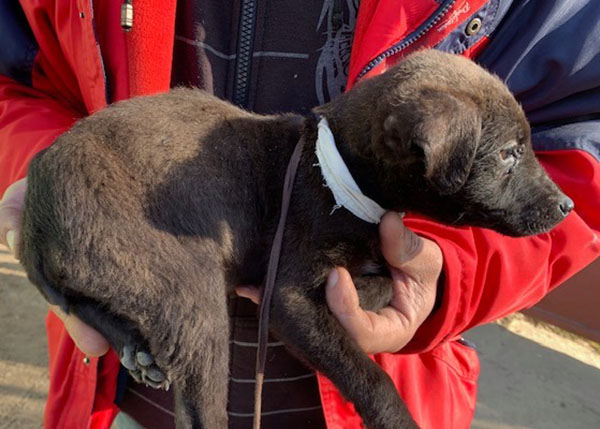 Das Menhely wurde von der Feuerwehr gerufen, nachdem Passanten diesen gefesselten Welpe in einem Sack gefunden haben...