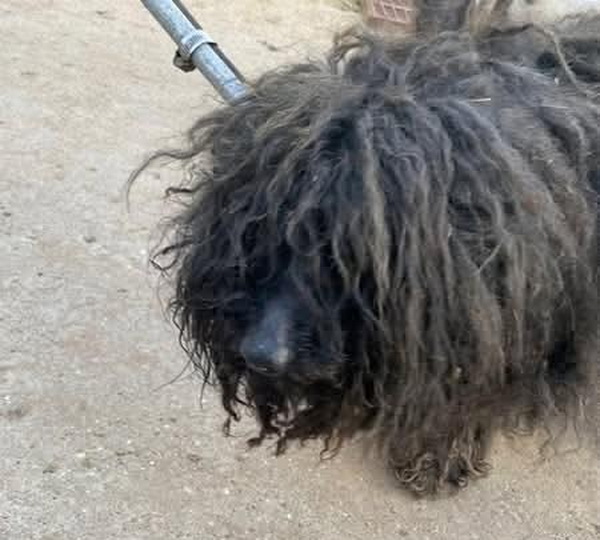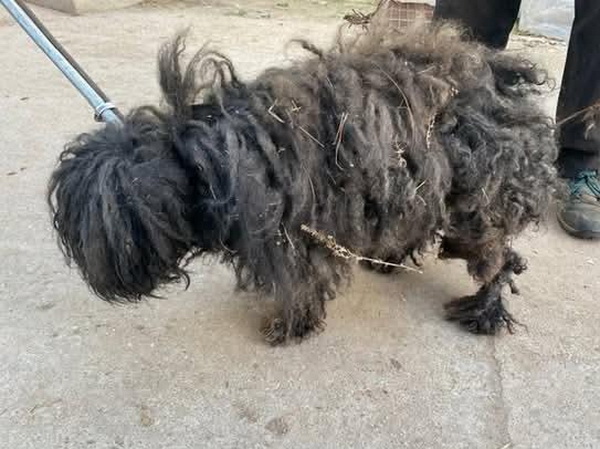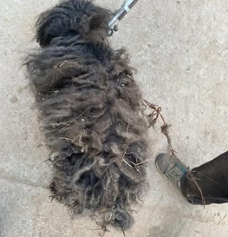Im Tierheim musste man ihn erst einmal vom Stacheldraht im Fell befreien.