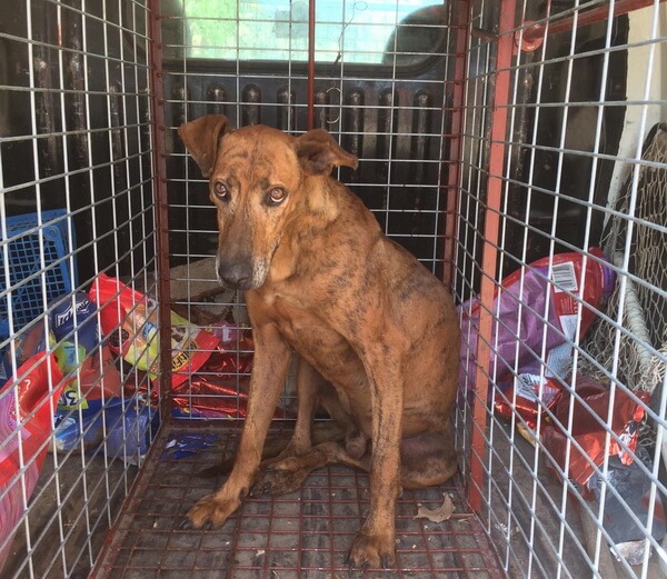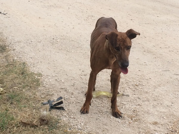 Als die Mitarbeiter vor Ort ankamen, sahen sie den Hund nicht, aber die Fessel und das Klebeband, an denen Blut klebte. Irgendwie konnte der Hund sich befreien. Dann entdeckten sie den Vierbeiner, er war verständlicherweise misstrauisch und verstört und liess sich nicht einfangen.