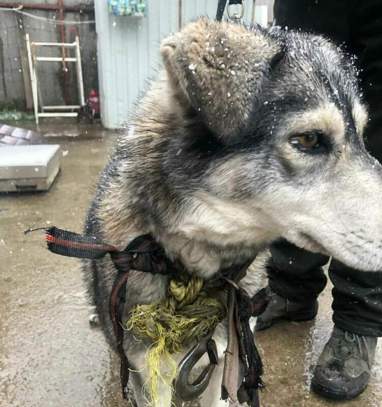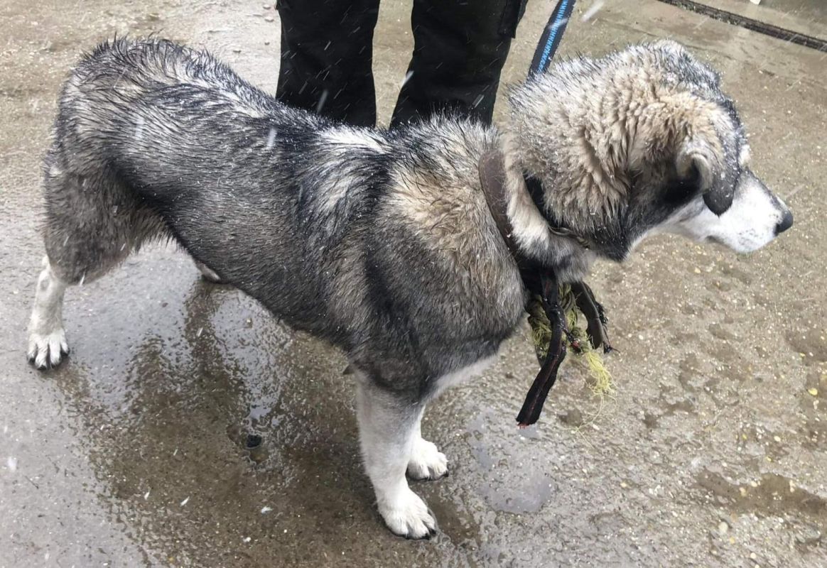 Anhand der Bilder kommt die Vermutung auf, dass diese Hündin an der Kette gehalten wurde und sie sich selber befreien konnte.