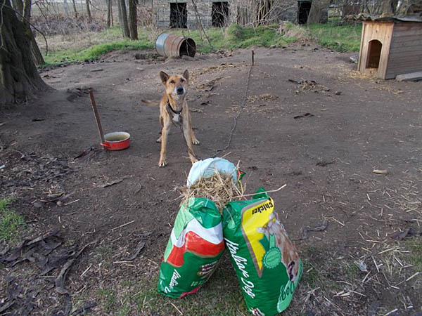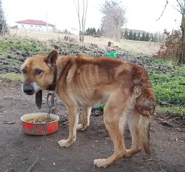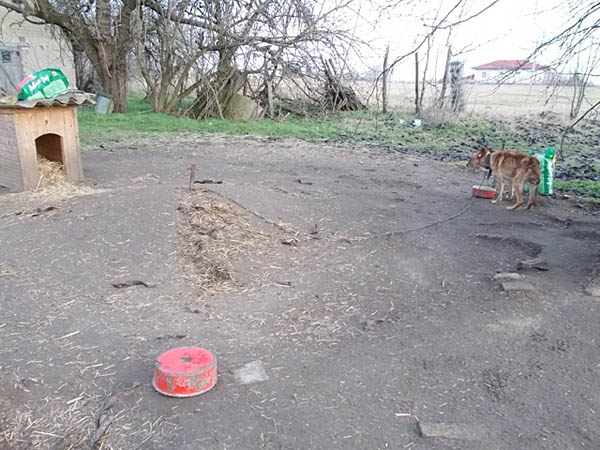 Durch die Hundehüttenaktion wurde man auf diesen namenlosen Hund aufmerksam. Man kam ins Gespräch mit dem Besitzer, man überliess ihm eine Hundehütte und man sah einen Riesentumor an seiner Rute. Es gab Gespräche und dann willigte der Besitzer ein, dass Menhely diesen Hund befreien/beschlagenahmen durfte. Am 6.2.15 kam er ins Tierheim und der Arzt hatte ihn über 15 Jahre eingeschätzt. Der Tumor war riesig und er hatte einen ganz schlechten Allgemeinzustand. Er wurde sofort erlöst. Run free....du hattest nie eine Chance!