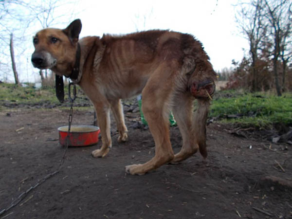 Uns wird es schlecht zu sehen, dass dieser Hund wahrscheinlich so 15 Jahre dahinfristen und weiss gott wie lange noch Schmerzen aushalten musste. Leider teilen solche Schicksale noch ganz viele andere Kettenhunde in Ungarn!
