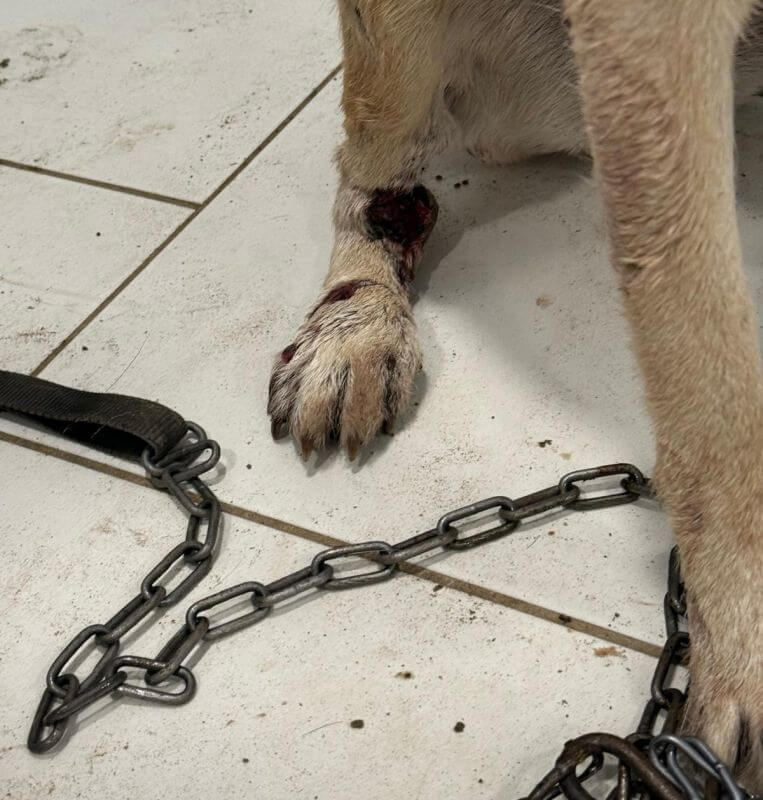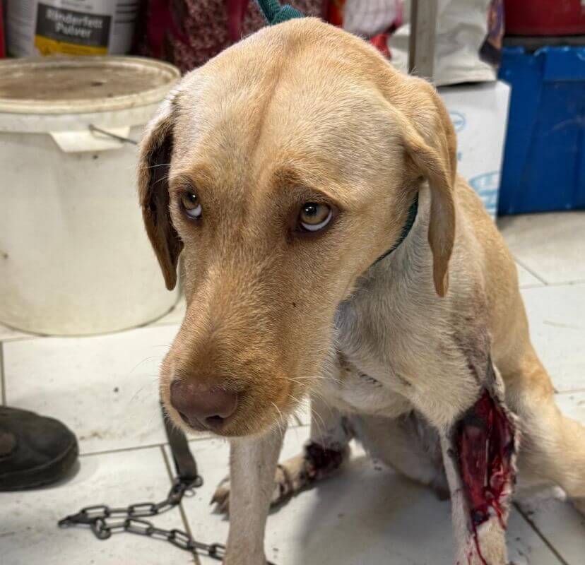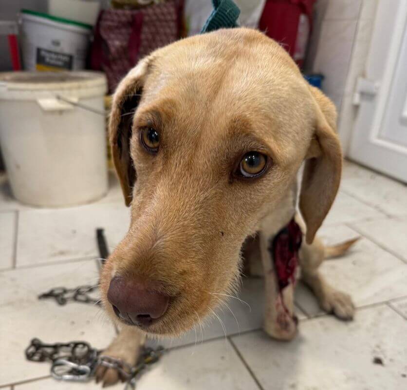Diese Hündin mit einer Kette um den Hals, wurde schwerverletzt aufgefunden und ins Tierheim gebracht.