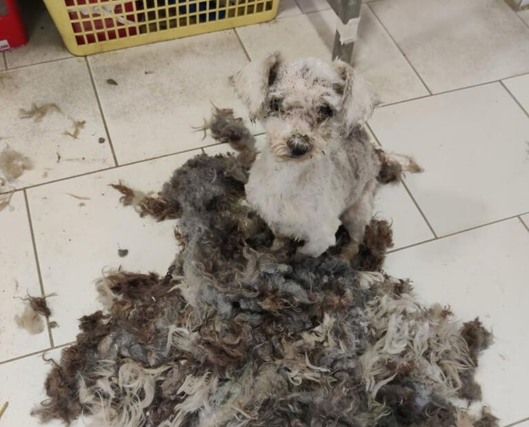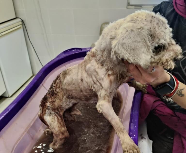 Er wurde vom Filz befreit und gebadet. Nun wird er liebevoll aufgepäppelt.