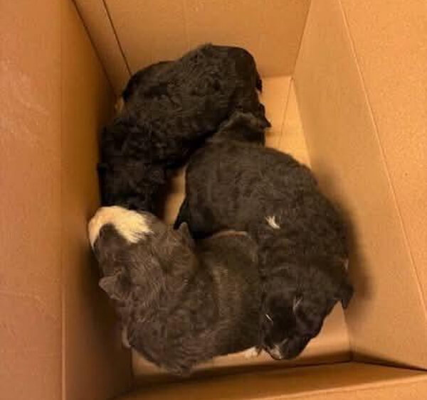 Heute wurden bei eisiger Kälte 4 Welpen in einem Karton vor dem Tierheim ausgesetzt.