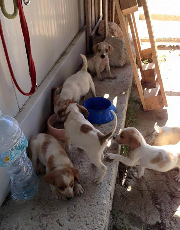 Heute Morgen stand eine Kiste mit diesen 7 Welpen vor dem Tor, 5 Mädchen, 2 Buben.