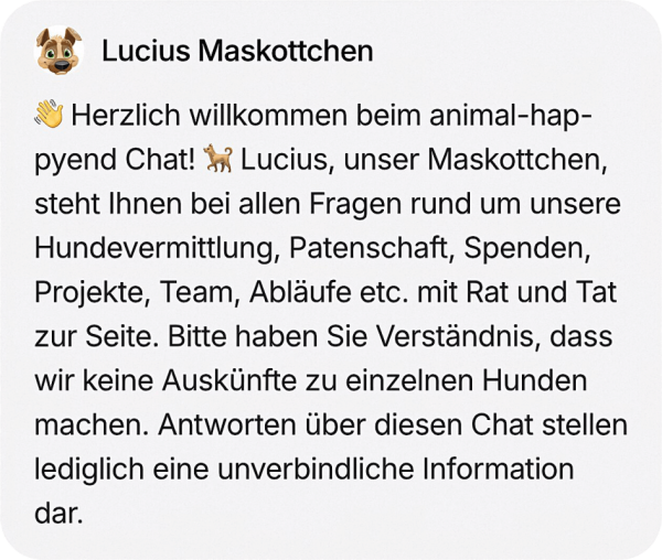 Wir freuen uns, Ihnen unseren neuen Chat vorzustellen. Lucius, unser tierisches Maskottchen, ist ab sofort online für Sie da.