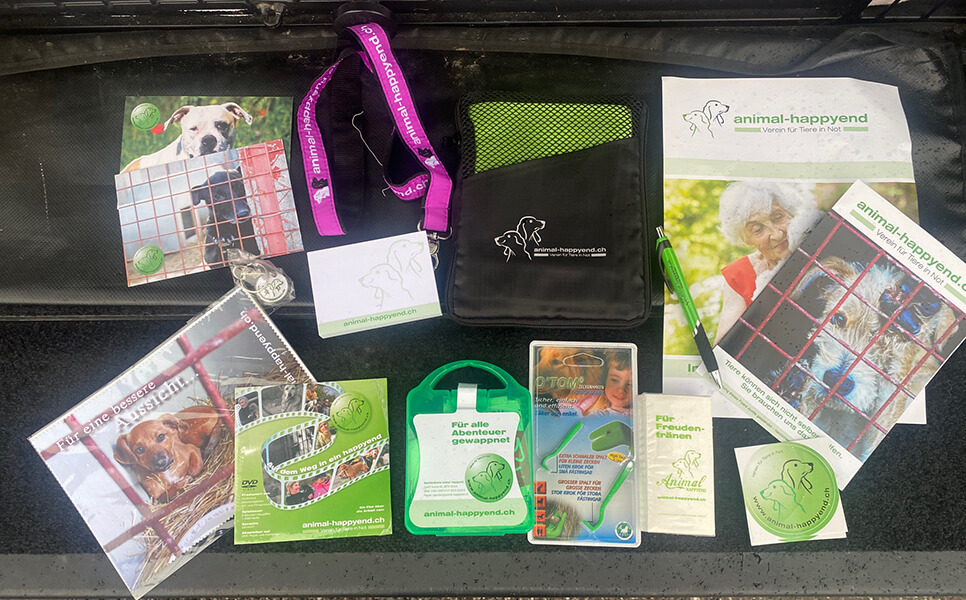 Bereits über 1 1/2 Jahr erhält jeder Adoptant bei Abholung seines Hundes in Wädenswil/Beichlen von animal-happyend einen GIVE-AWAY-BAG.