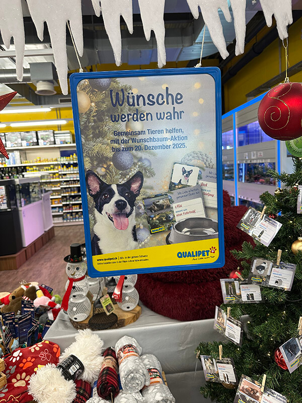 Qualipet Egg/ZH hat uns im November 2025 kontaktiert und uns die wunderbare Nachricht überbracht: animal-happyend wurde für die Wunschbaum-Aktion 2025 ausgewählt.