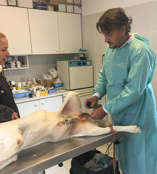 Während unserer Arbeit, operierte Dr. Gyula (Tierheim Tierarzt) viele Hunde. Sei es Kastrationen, Einschläferungen, Erstversorgungen oder auch Begutachtungen. Ein weiterer Hund in der Quarantäne, welcher nun kastriert wurde, hatte eine äusserst brutale Verletzung. Er wurde im Beckenbereich stranguliert und dadurch wurde sein Penis aus der Haut gerissen. Diese Operation steht nach der Quarantänezeit fest und wir hoffen, dieser Rüde hält durch und darf bald die Sonnenseiten des Lebens kennenlernen. Dieser Anblick, dieses Quälen war auch für uns nicht leicht verdaubar.