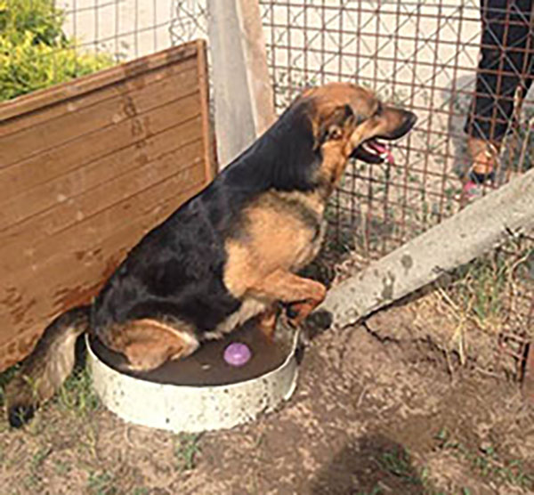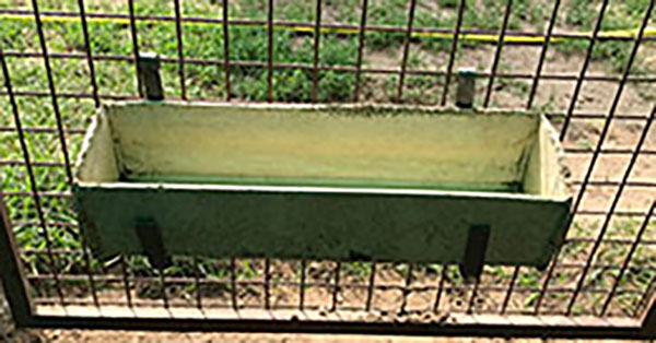 Viele Hunde sind zurzeit dehydriert, da die Wassernäpfe in der Rudelhaltung immer wieder umkippen. Dies passiert beim Spielen oder weil die Hunde bei warmen Temperaturen versuchen, sich darin abzukühlen. Verschiedene neue Varianten wurden ausprobiert. Nun sind wir zum Schluss gekommen, dass das sogenannte "Balkon-Blumenkasten-Symstem" mit spezieller Hängevorrichtungen das Wasserproblem löst. Wir brauchen davon rund 200 Stück für alle Kennels.
